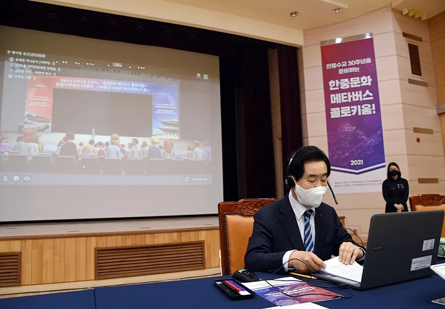 식전행사는 문희상 전 국회의장을 비롯한 한국 측과 추궈홍 전 주한중국대사 등 중국 측에서 축사 영상을 보내, 메타버스로 진행되는 한중 교류 행사에 대한 격려와 감사를 전했다.