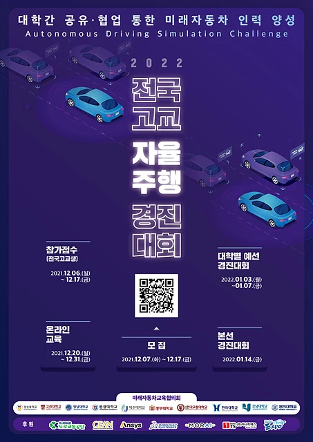 도로교통공단, 다쏘시스템, 앤시스,모라이, 하나티에스, 국제전기차엑스포, 세계전기차협의회의과 함께 인공지능·자율주행·로보틱스·커넥티비티·드론·디지털트윈 등 미래 기술 분야를 이끌어갈 공학 인재를 육성하기 위해 마련된 이번 경진대회는 대학간 공유·협업을 통한 미래 자동차 인력 양성의 첫 사례로, 가상 환경을 활용한 고교-대학의 연계 프로그램으로 대학에서 학생들이 배울 자율주행자동차를 미리 디지털 트윈과 자율주행을 체험할 수 있는 기회이다.