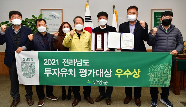 담양군이 2021년도 전라남도 투자유치대상 평가 결과 3년 연속 우수상에 선정되는 영예를 안았다.