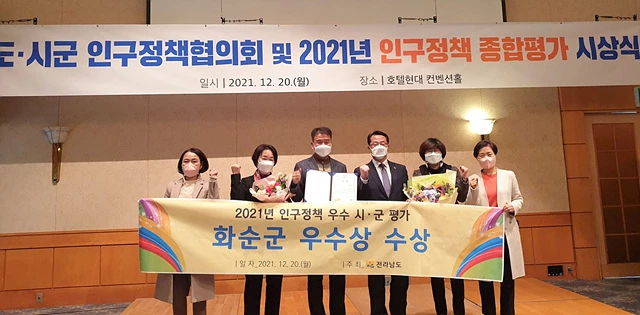 화순군(군수 구충곤)이 전라남도가 주최한 ‘2021년 인구정책 우수 시군 시상식’에서 우수상을 받았다.