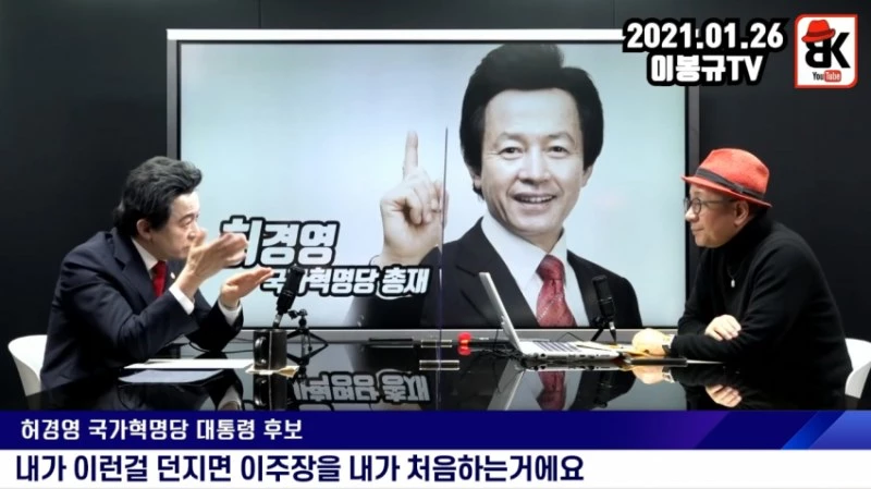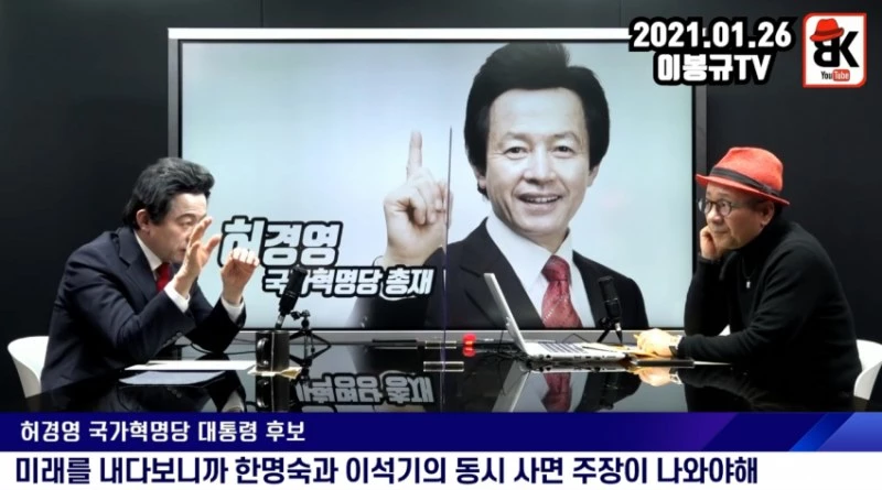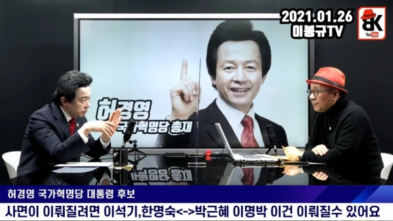 24일 인터넷 커뮤니티 디시인사이드에는 '소름! 한명숙, 이석기 박근혜 트레이드'라는 제목의 글이 게재됐다. 해당 글에는 지난 1월 26일 이봉규 시사평론가가 운영하는 유튜브 채널 '이봉규TV'에 게재된 허경영 국가혁명당 대선 후보가 출연한 영상을 캡처한 장면들이 포함됐다.