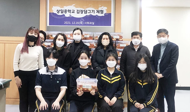 상일중학교는 봉사의 참된 의미를 나누기 위한 봉사활동을 꾸준히 진행해 왔고, 지난 여름 학생들이 직접 만든 모기퇴치제&손소독제에 이어 연말에도 김장김치를 직접 담가 서구 관내 아동에게 전해지길 바라는 마음으로 서구청에 후원했다.