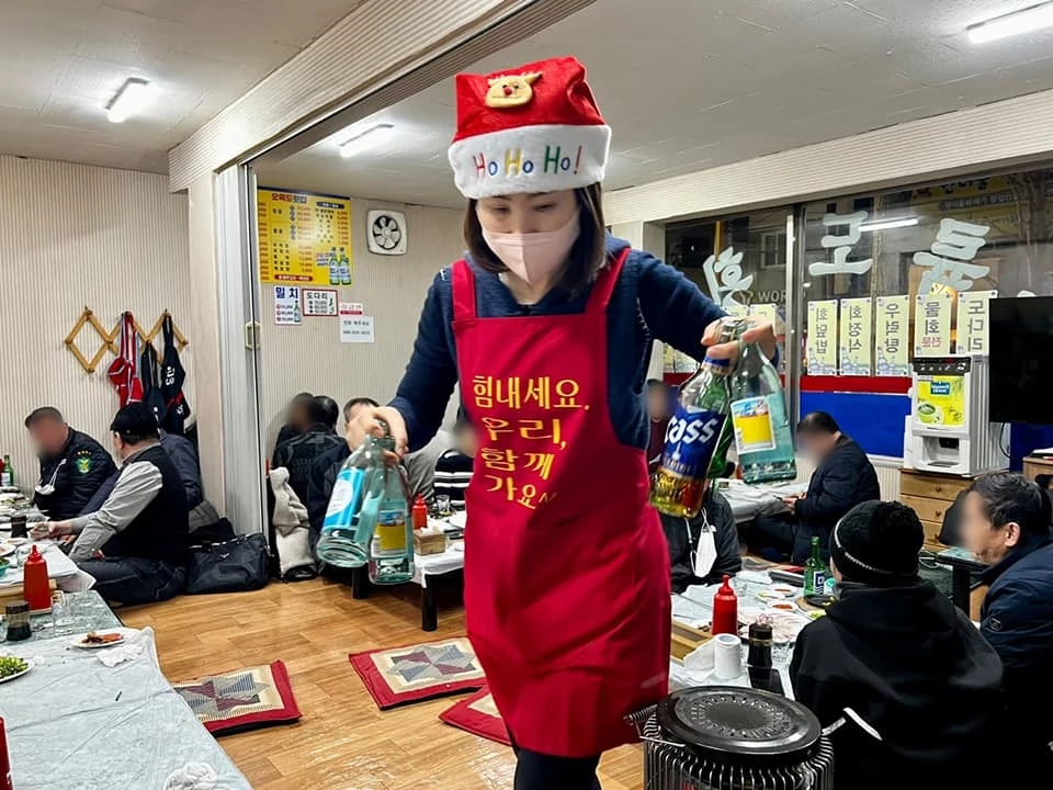 다음은 부산 횟집에서 아르바이트생으로 일한 김미애 의원 사진이다.