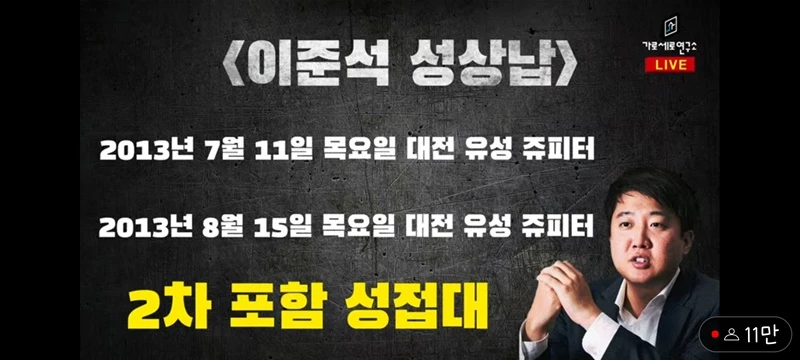 이에 앞서, 가세연은 이날 오후 7시부터 '충격 단독. 이준석, 성 상납 받아 (대전지검 수사 증거 기록)'라는 제목으로 생방송을 했다. 실시간 시청자는 무려 12만 명 이상이었다.