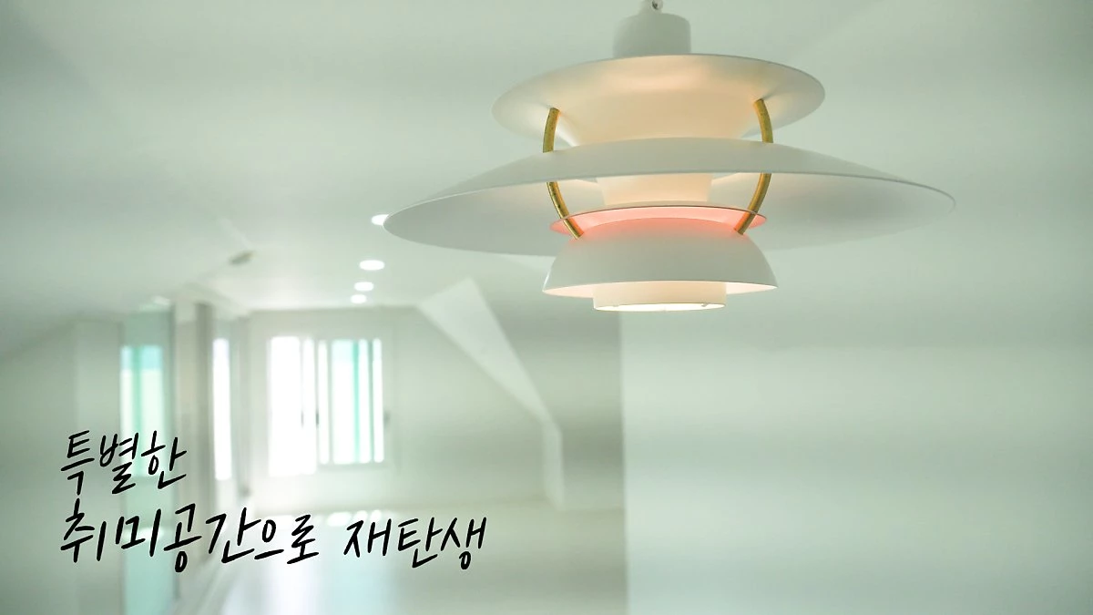 복층 다락은 온돌 난방이 안 돼 거의 버려진 곳이었다. 바닥에 전기 패널을 시공해 겨울에도 따뜻하게 사용할 수 있도록 했다. 대각선 형태의 다락방은 팬던트등을 설치해 차를 마시거나 영화를 보는 취미 공간으로 활용할 수 있도록 했다.