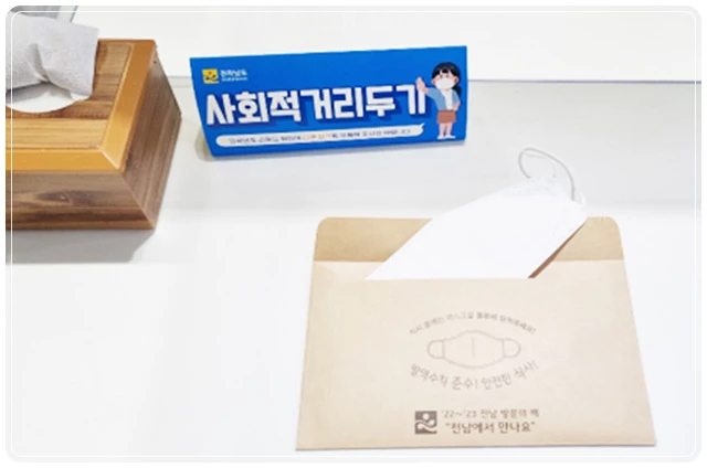 전남도 관계자는 “코로나19 감염 및 확산을 막기 위해 마스크를 잘 착용하는 게 중요하다”며 “부득이하게 식당에서 마스크를 잠시 벗고 식사를 하는 경우 위생적인 1회용 마스크 보관봉투와 마스크 걸이를 편리하게 이용했으면 좋겠다”고 당부했다.