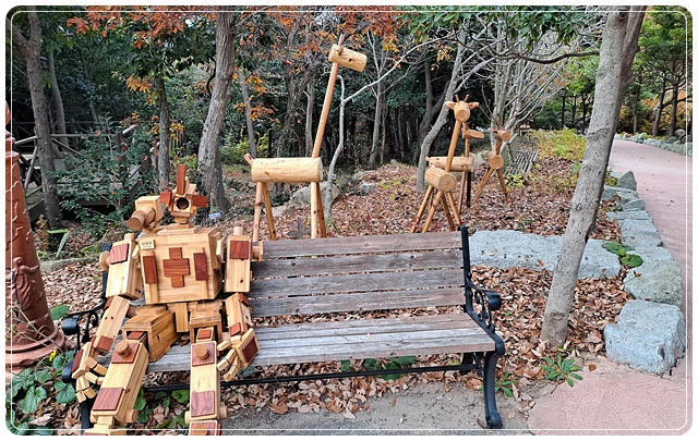 전남도 완도수목원이 산림자원을 재활용하고 가족 단위 관람객에게 멋진 추억을 선물하기 위해 1km 길이의 ‘나무 동물ㆍ로봇길’을 조성했다.