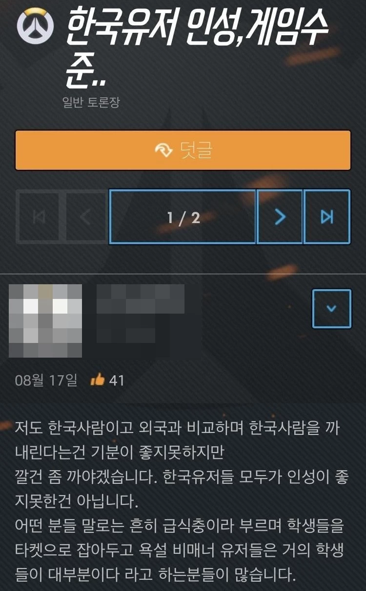 우리나라 온라인 게임 인성 수준 관련 커뮤니티 글