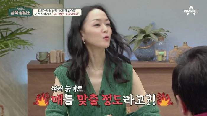 김윤아는 “아버지께서는 목공소에서 매를 맞추셨다. 때리려고. 매를 굵기 별로 맞추셨다”고 말했다. 그러면서 “근데 또 너무 화가 나는 것 중 하나가 밖에 나가면 너무 좋은 아버지, 남편, 가장이었다”고 분노했다.