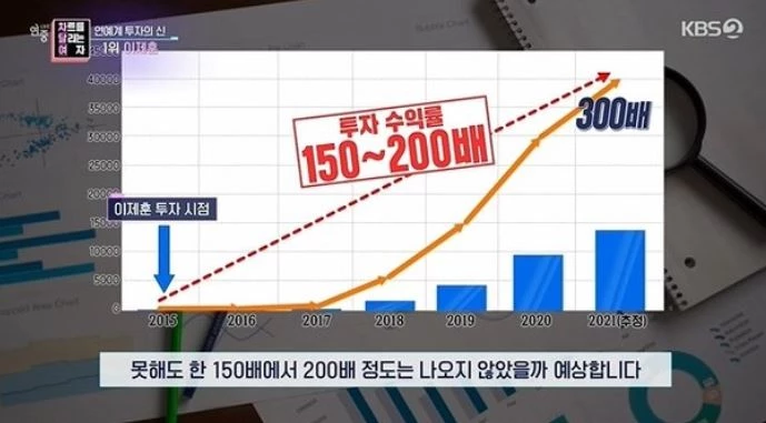 현재 온라인 식품 배송업체 마켓컬리는 3년 만에 60배 폭풍 성장해 1800억 원 매출을 기록하는 등, 기업가치 4조 원에 이르는 유니콘 기업으로 성장했다. 당시 수억 원을 투자한 것으로 알려진 이제훈은 마켓컬리 매출 성장률이 300배에 달하면서 투자 수익률도 150~200배로 예측된다.