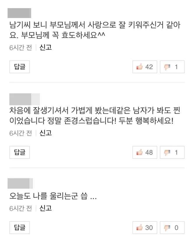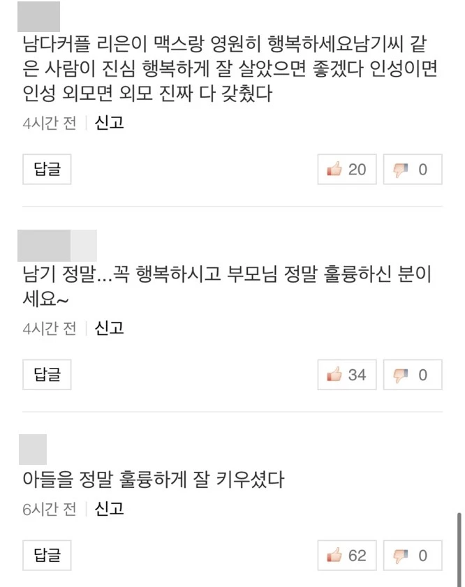 윤남기의 눈물 고백에 누리꾼들은 "행복하세요" "아들을 정말 훌륭하게 잘 키우셨다" "오늘도 나를 울리는군..." 등의 반응을 보였다. 다음은 네이버TV 댓글창 일부다.