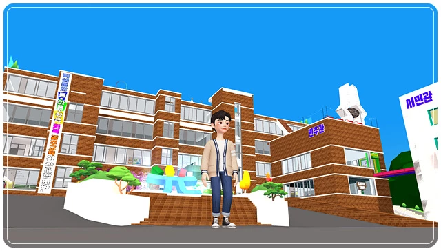 ‘광주교육 메타버스’에는 광주의 상징인 5·18민주화운동 추모탑과 무등산 입석대를 배경으로 실제 교육청 청사 외형을 본뜬 가상세계인 민주관(본관)과 시민관(별관)이 구현돼 있다.