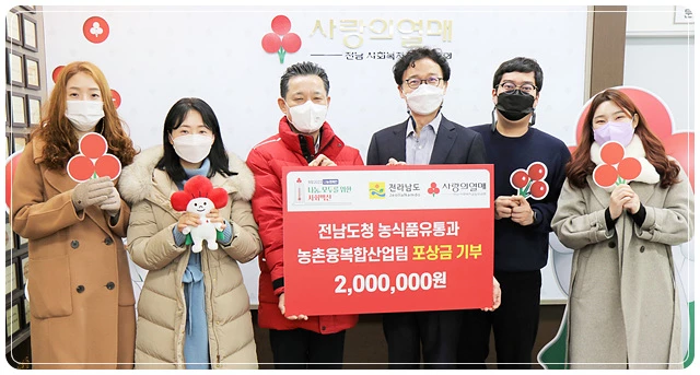전라남도 농식품유통과 농촌융복합산업팀 직원들이 도정발전 우수제안으로 채택돼 받은 상금 200만 원을 사회복지공동모금회에 전달해 눈길을 끌었다.