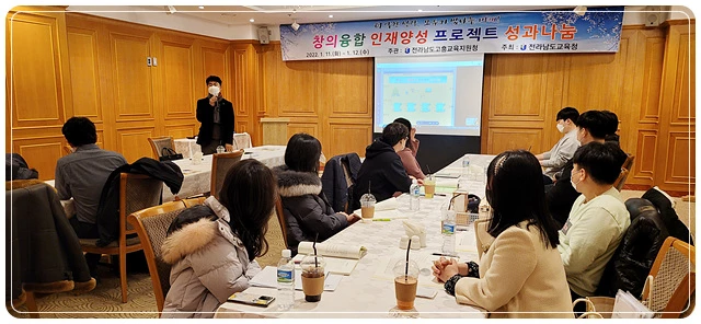 전남도교육청(교육감 작성웅)이 (재)전남미래교육재단 장학사업인 ‘2021년 창의융합 인재양성 프로젝트’를 성공적으로 마치고, 지난 12일 목포 샹그리아호텔회의실에서 우수사례를 공유하고, 발전 방향 모색을 위한 성과나눔 행사를 가졌다.