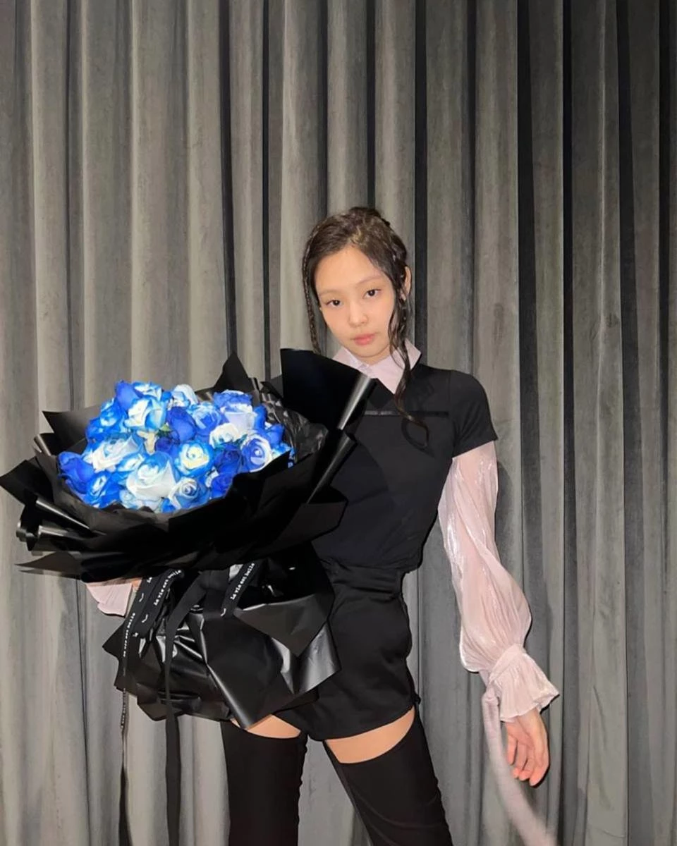 사진에는 파란색 장미 꽃다발이 담겼다. 제니는 ‘annual blue roses from my mum(매년 엄마가 주는 파란 장미)’라고 설명했다.