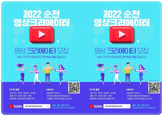 지원신청은 네이버 폼(http://naver.me/xgGXRniS)에서 신청 가능하며, 기타 자세한 사항은 순천시 홍보실 뉴미디어홍보팀(061-749-5732)으로 문의하면 된다.