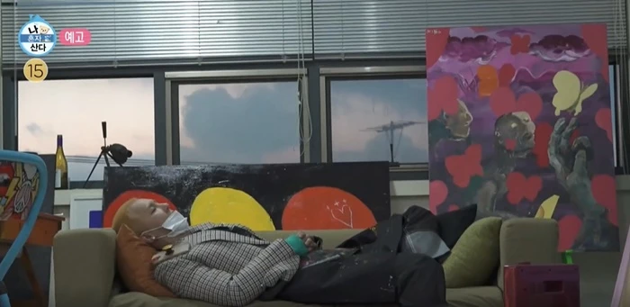 이후 작업실에 도착한 그는 그림을 그리며 진지한 면모를 드러내 이목을 끌었다. 그러나 작업실에서도 소파에 누워 낮잠을 자 웃음을 자아냈다.