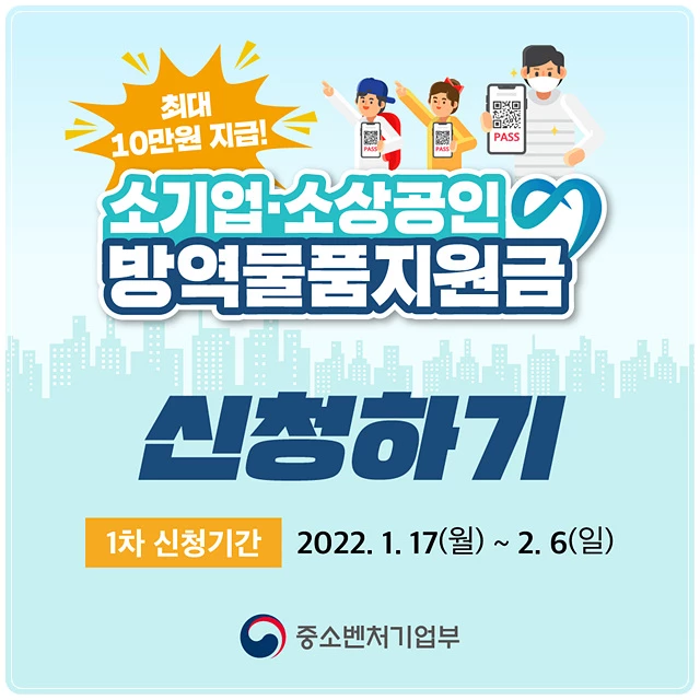 지원 대상은 유흥시설, 노래연습장, 식당, 카페 등 방역패스 의무 적용시설 16개 업종으로, 지난해 12월 3일 이후 구매한 방역물품에 대해 업소당 최대 10만원까지 지원한다. 1인이 2개 이상의 다수 사업체를 운영하는 경우에는 등록된 사업체별로 각각 지원받을 수 있다.