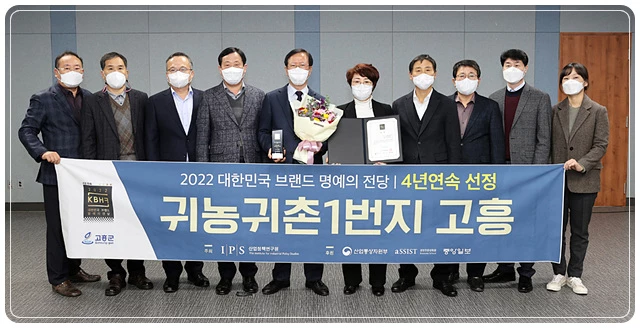고흥군(군수 송귀근)은 27일 산업정책연구원(IPS)이 주최한 「2022 대한민국 브랜드 명예의 전당」‘귀농귀촌 도시 부문’에 선정되어 4년연속 수상하는 영예를 안았다고 밝혔다.