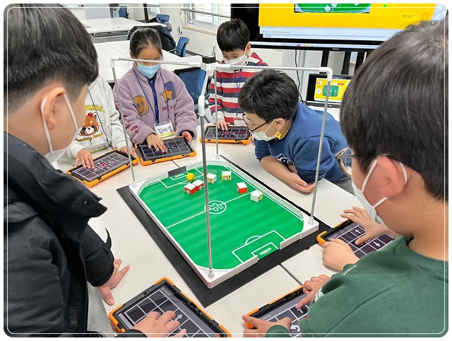 관내 초등학생을 대상으로 실시한 이번 캠프는 1,2학년은 스크래치 주니어를 통해 블록코딩 기초를 입문하였고, 3~6학년은 교육용 로봇인 햄스터 로봇을 직접 조작해보면서 AI축구와 바닥 센서가 검은색을 인식하여 동작하는 라인트레이서를 통해 코딩능력과 로봇융합 사고력을 향상시켰다.