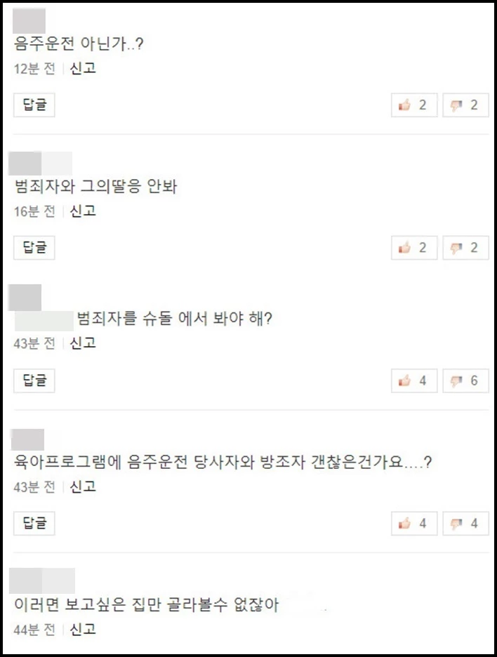 한편 새로운 가족으로 영입된 백성현에 대한 날카로운 시선도 있었다. 일부 이용자들은 "음주운전 아닌가?", "범죄자와 그 딸 안 본다", "범죄자를 슈돌에서 봐야 되나" 등 반응을 보였다.