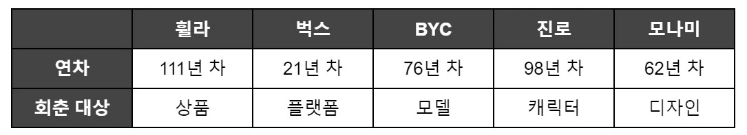 휠라는 골프 웨어, 트레킹화 등 중장년층 타깃의 상품을 주력으로 판매해왔다. 젊은 층은 상대적으로 나이키, 아디다스 등 글로벌 스포츠 브랜드를 선호했기에 휠라는 중장년층의 전유 브랜드라는 올드한 이미지가 있었다.