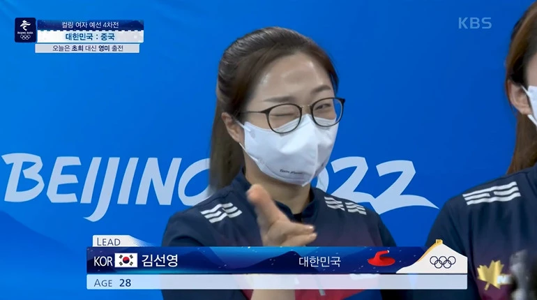 김선영은 이날 베이징 내셔널 아쿠아틱 센터에서 열린 2022 베이징 동계 올림픽 컬링 여자 4인조 예선 4차전 중국과의 경기에 출전했다.