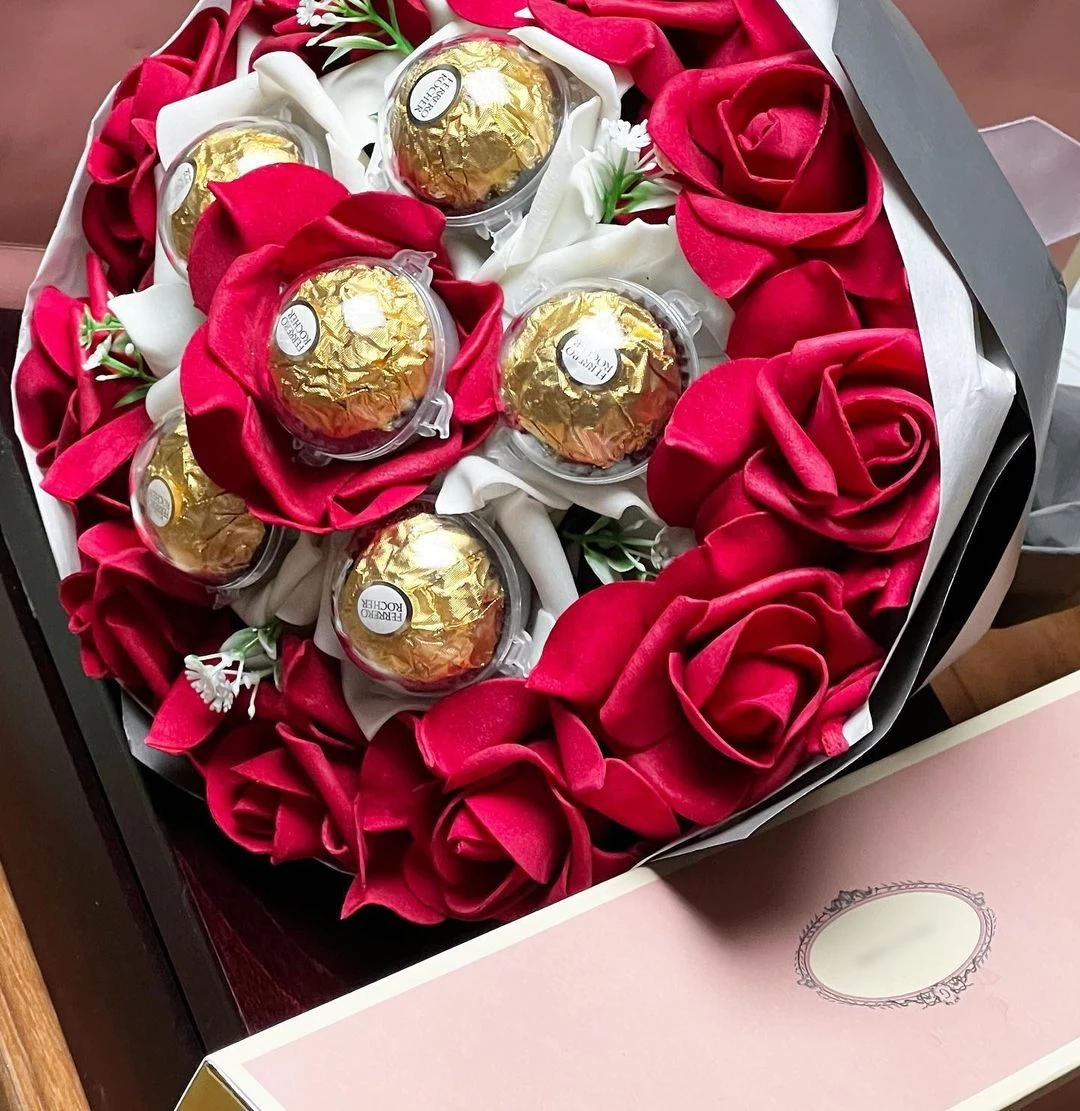 공개된 사진에서는 초콜릿 꽃다발과 함께 한 유명 베이커리 카페의 디저트가 담겼다.
