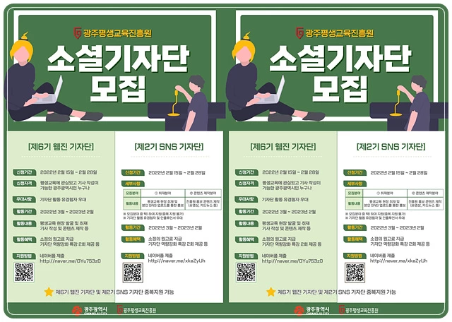 광주광역시와 (재)광주평생교육진흥원(이하 ‘진흥원’, 원장 김이겸)이 광주 평생교육 현장의 이야기를 발굴, 시민에게 전달하기 위한 ‘소셜기자단’을 모집한다고 15일 밝혔다.