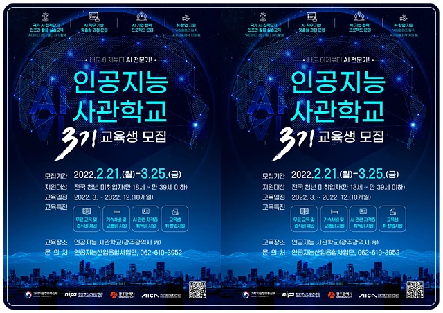 손경종 시 인공지능산업국장은 “인공지능사관학교에 참여하는 10개월 동안교육생들에게 인생에서 가장 중요한 경험을 선사할 수 있도록 최상의 교육과정을 준비하겠다”며 “전국 청년들이 많이 응모해주기를 바란다”고 말했다.