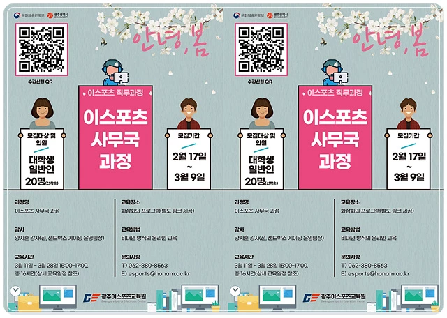 문화체육관광부와 광주광역시의 ‘아시아이스포츠산업교육플랫폼’ 지원 사업으로 호남대학교가 위탁운영하고 있는 광주이스포츠교육원(원장 정연철 호남대 교수)은 2월 17일부터 이스포츠산업의 활성화와 전문인재 양성을 위해 ‘이스포츠 사무국 과정’ 수강생을 모집한다.