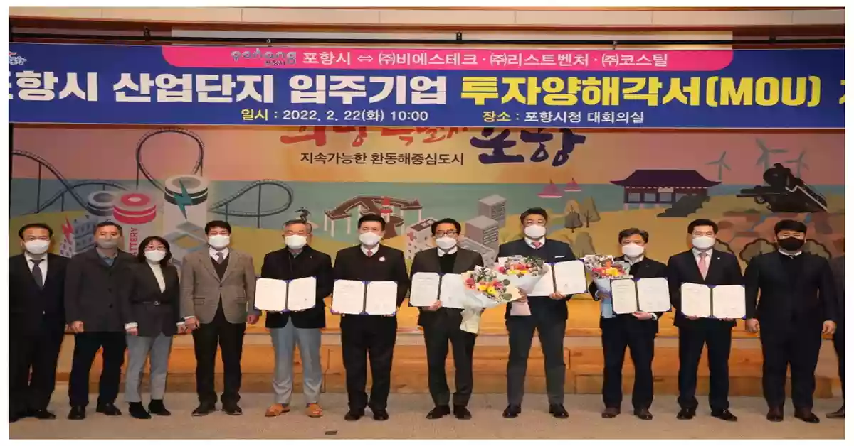 포항시는 22일 시청에서 포항시 주요 산업단지 내 공장 건립 투자를 추진하고 있는 기업 3개사와 투자양해각서(MOU)를 체결했다.