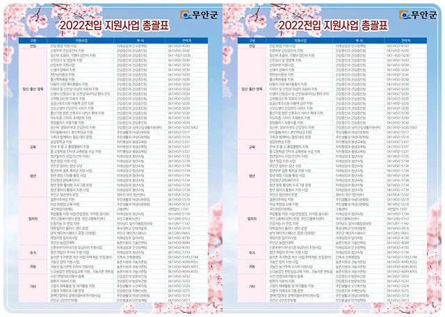청년지원 사업으로 ▲무안 거주 만 19세~39세 청년 대상 일자리·창업 지원 ▲일하는 청년 수당 지급 ▲청년부부 결혼 축하금 지원 ▲청년 희망 디딤돌 통장 ▲전남 청년 문화복지카드 ▲청년 문화 활성화 프로그램 ▲청년 동아리 활동비 등 9개 사업을 추진한다.