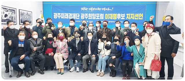광주미래경제단과 광주희망포럼은 이날 오후 서구 상무지구 민주당 광주시당에서 기자회견을 열고 단체 소속 회원 5천여명은 “더 크고 더 강한 광주시대를 열고 새로운 미래 100년의 기초를 다질 이재명 후보 지지를 선언한다”고 밝혔다.
