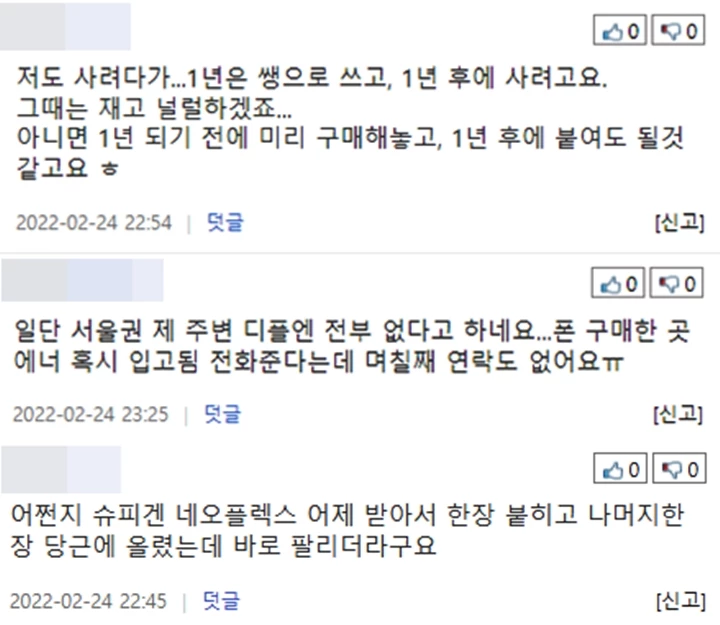 다른 누리꾼들도 댓글을 통해 "중소기업 브랜드 제품도 구하기 어렵다" "전 아예 1년 후에 사려고 마음 먹었다" 등의 반응을 보였다.