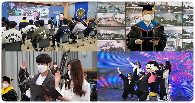 나윤영 교수(뷰티미용학과)와 호남대학교 웹툰 캐릭터 호덕이의 사회로 진행된 이날 입학식은 신문방송학과 이연수 교수의 총연출과 통합뉴스센터(주간 정철)의 최첨단 LTE 방송장비, 학생기자가 총 투입돼 신입생들의 대학생활에 도움이 될 다양한 학사정보와 레이싱 드론으로 보는 호남대학교 캠퍼스, 신입생들의 힘찬 출발을 응원하는 축하무대(2021 도전 호대킹 우승팀 ‘라온’, 덕 날아온다 뮤직비디오) 등으로 다채롭게 꾸며졌다.