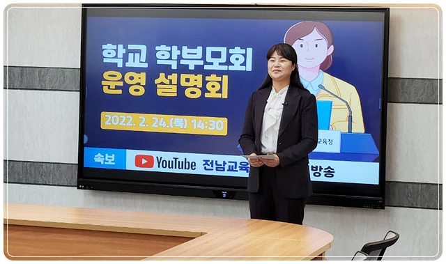 이날 설명회는 3월 새 학기 시작되기 전 학교 학부모회 운영에 대한 세부 지원 계획을 안내하고 학교에서 추진해야 할 업무에 대한 학부모들의 이해도를 높이기 위해 마련됐다. 설명회 영상은 유튜브 채널 ‘전남교육TV’를 통해 송출됐다.