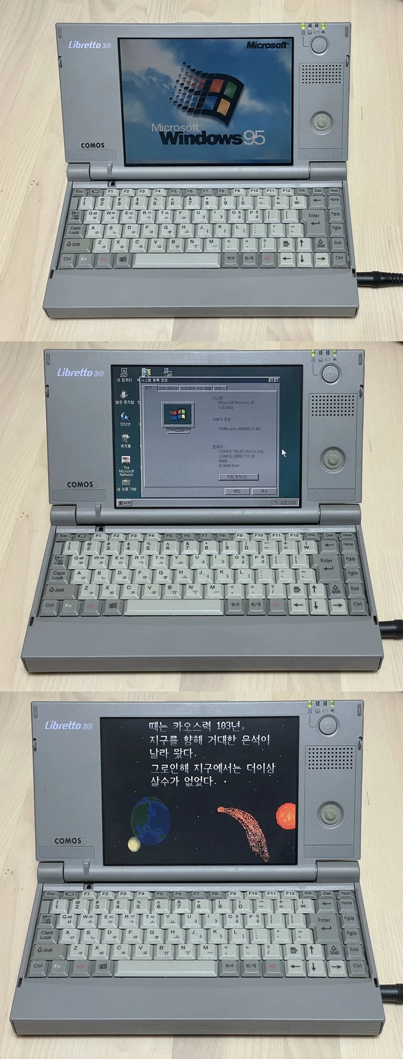 사진엔 마이크로소프트의 운영체제(OS)인 윈도우95가 실행되고 있는 리브레또 30의 모습이 담겼다. 16비트의 고전 게임 '스타워즈3'가 구동되는 화면은 많은 이들의 추억을 상기시키기에 충분하다.