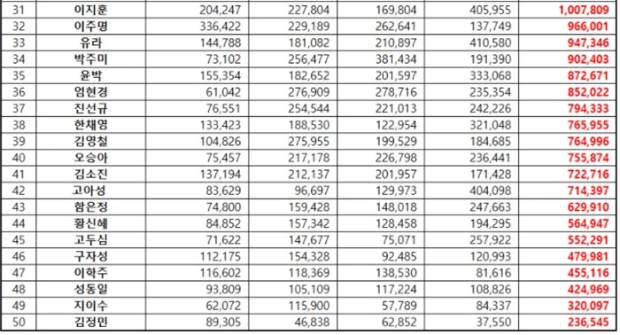 한국기업평판연구소가 발표한 3월 드라마 배우 브랜드평판