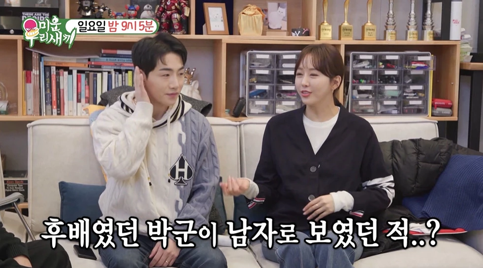 김준호는 “그래도 계기가 있었을 것 아니냐. 후배였던 박군이 남자로 보였던 적이 언제냐”고 물었다. 한영은 “(박군이) 처음에 ‘누나’라고 하길래 ‘계속 누나라고 할 거냐’고 했더니 ‘내가 알아서 할게’라고 하더라”라며 심쿵했던 순간을 말했다.