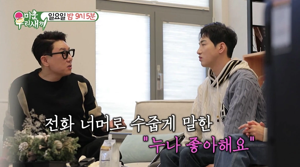 박군 “(한영과) 통화를 하다가 ‘누나 좋다’고 말했다”며 사귀게 된 상황을 설명했다. 이상민은 “한영 씨는 고백을 듣자마자 어땠냐”고 물었다. 한영은 “나도 너 좋아…” 한 마디로 현장을 핑크빛으로 물들였다.