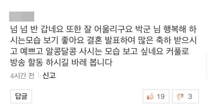 박군은 “늦게 찾아온 인연인 만큼 소중하게 지켜나갈 수 있도록 노력할 테니 따뜻한 응원 부탁드린다”며 소감을 전한 바 있다.