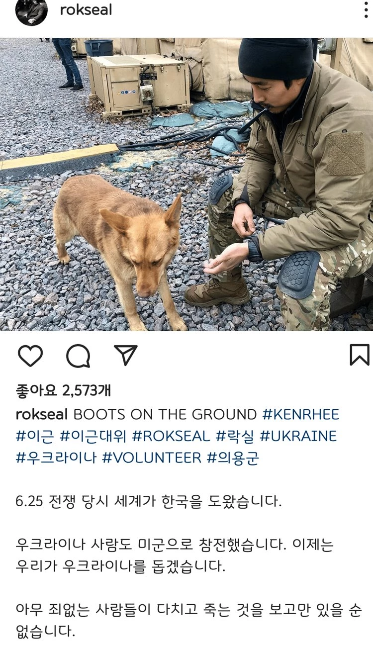 또한 인스타그램에는 “우크라이나 사람도 미군으로 참전했다. 아무 죄 없는 사람들이 다치고 죽는 것을 보고만 있을 순 없다”고 글을 올렸다.