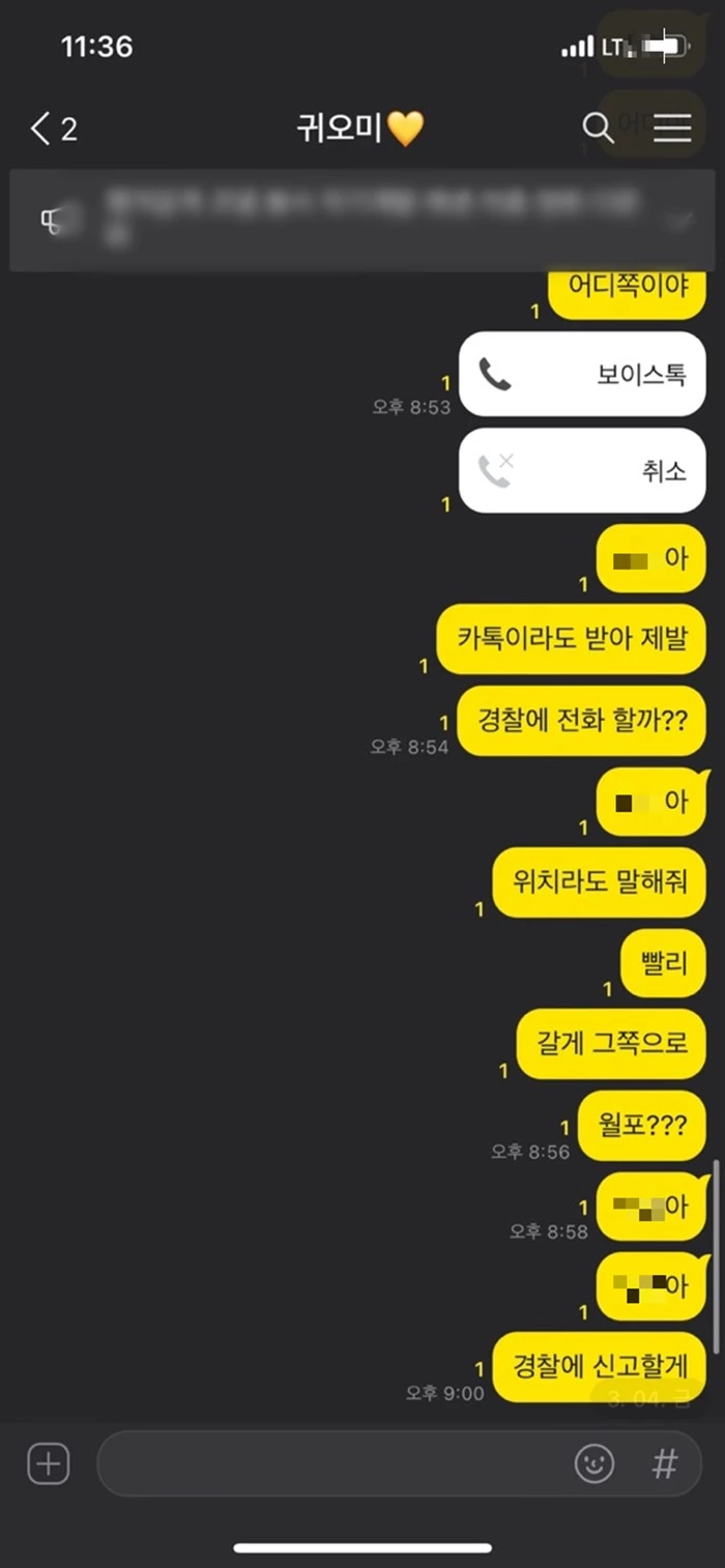 "카톡이라도 받아 제발, 경찰에 전화할까?"