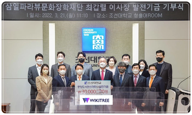 삼일건설·삼일파라뷰문화장학재단 최갑렬 이사장이 조선대학교에 ‘중앙도서관 스마트UP 발전기금’ 3000만원을 기부했다.