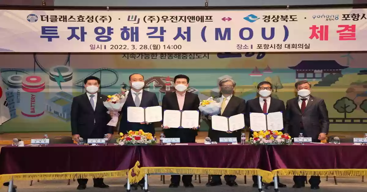시는 28일 시청 대회의실에서 포항시와 경상북도, 더클래스효성㈜과 ㈜우전지앤에프 간 투자양해각서(MOU)를 체결했다.