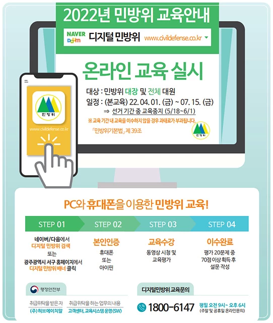광주시 서구가 오미크론 확산세를 고려하여 올해에도 전체 민방위대원을 대상으로 사이버교육을 실시한다고 밝혔다.