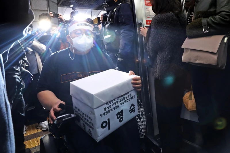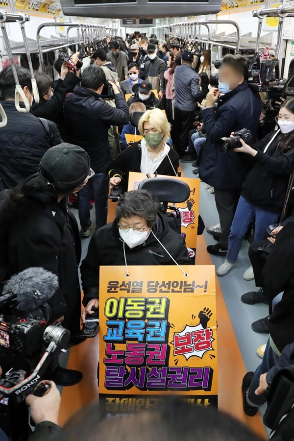 이동권 보장 요구하며 시위 중인 장애인 단체
