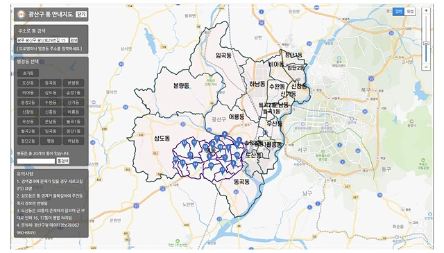 광주시 광산구, 통(統) 안내지도 온라인 서비스 실시