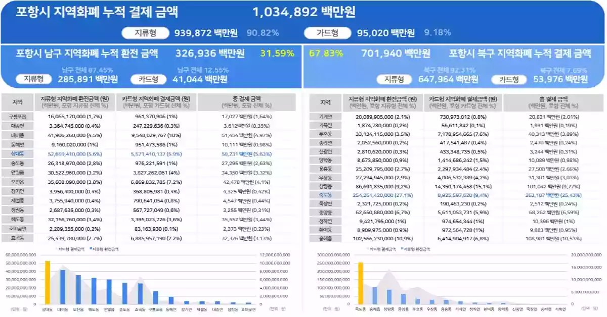 지역화폐 종류별·지역별 사용내역 / 포항시 제공
